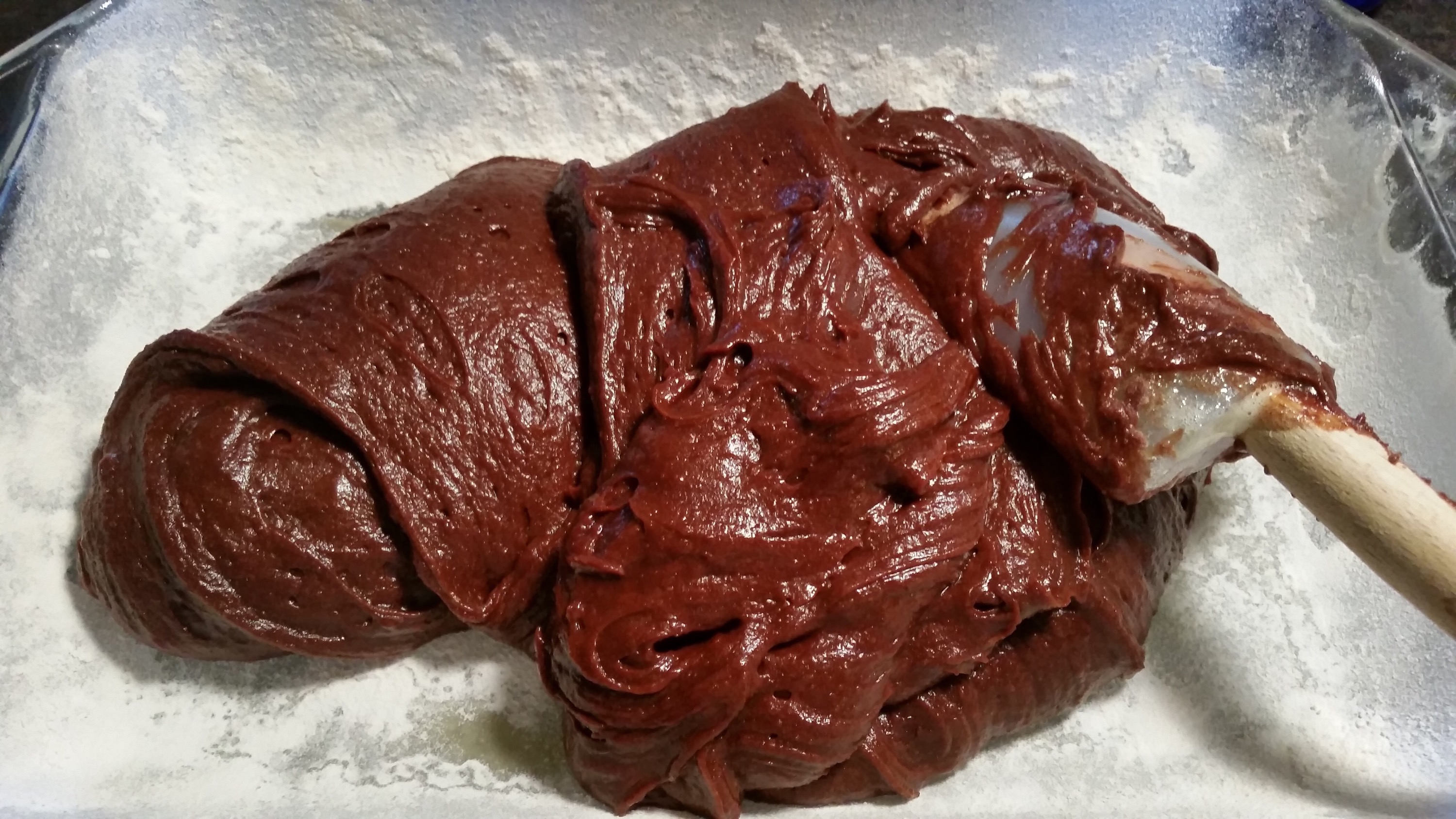 What’s different about this recipe is he mixes half the sugar into the melted chocolate and the rest into the eggs. Then the egg mixture is folded into the batter in stages.