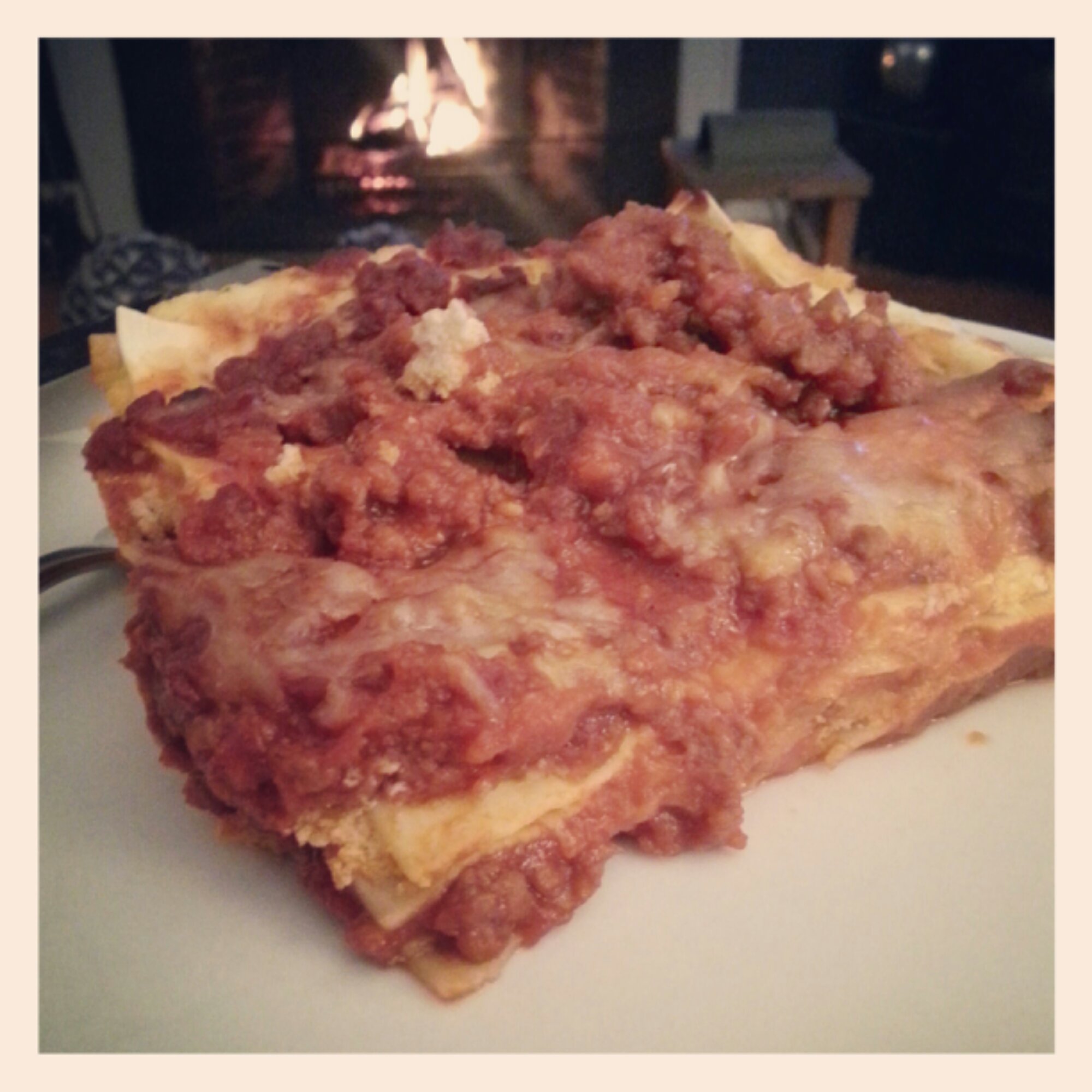 It’s snowing, I still don’t have a stove so what’s a girl to do? Make Lasagna in the toaster oven.