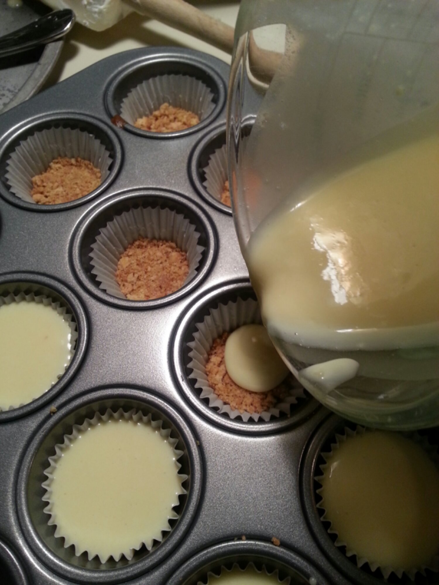 Line your mini muffin tin with liners (my phone really wanted to say muffin TOP… Bad phone, bad phone).