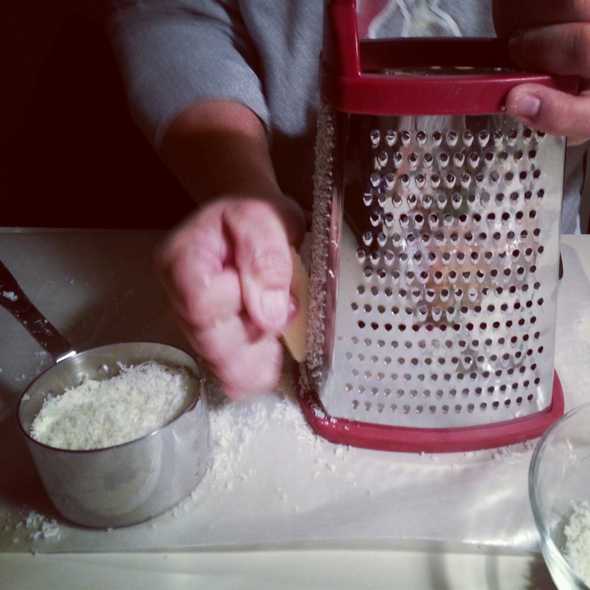 Steve is ‘ch-eating’…. For every cup he grates, he eats a 1/4 cup.