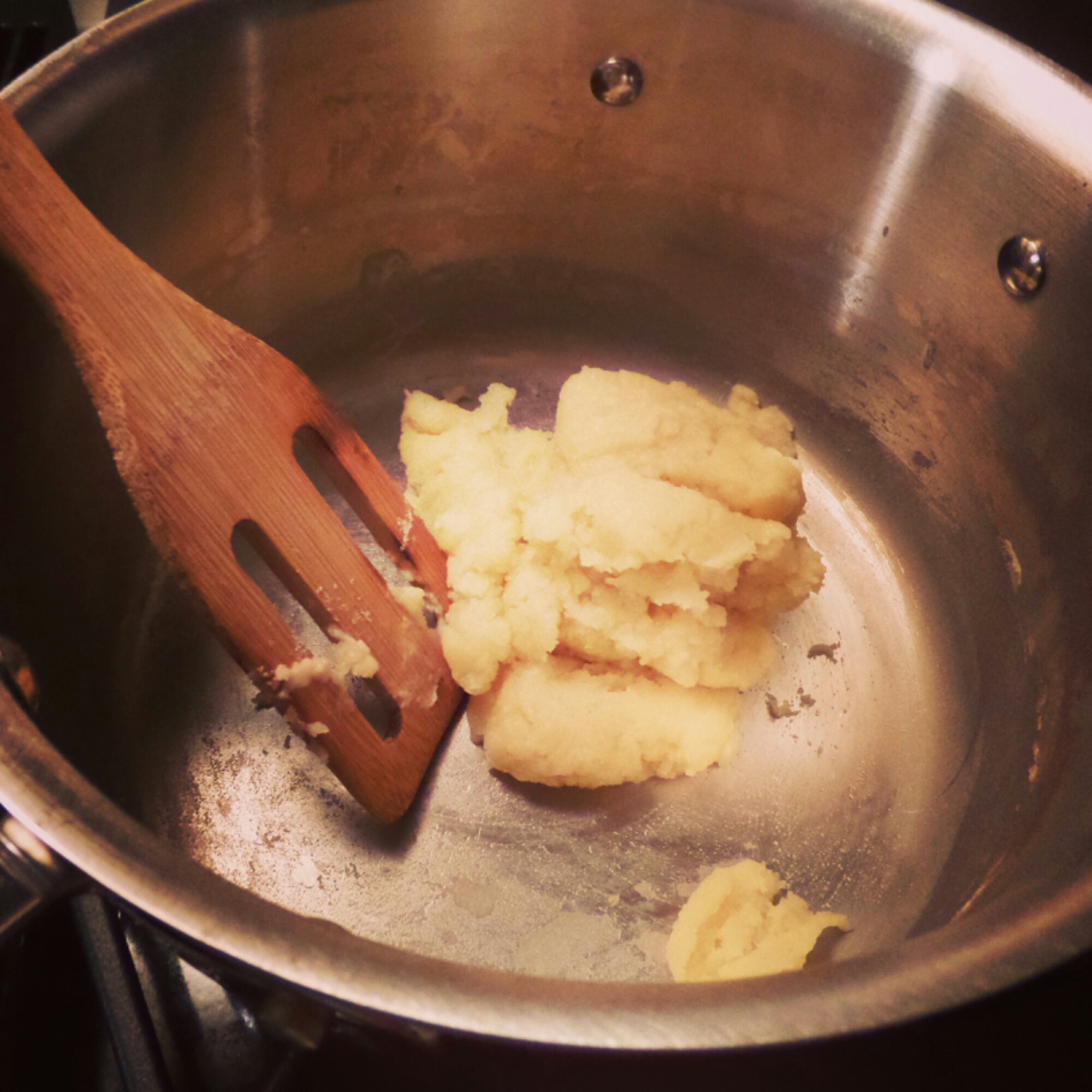The key is to stir with a wooden spoon until the flour starts coating the bottom of the pan.