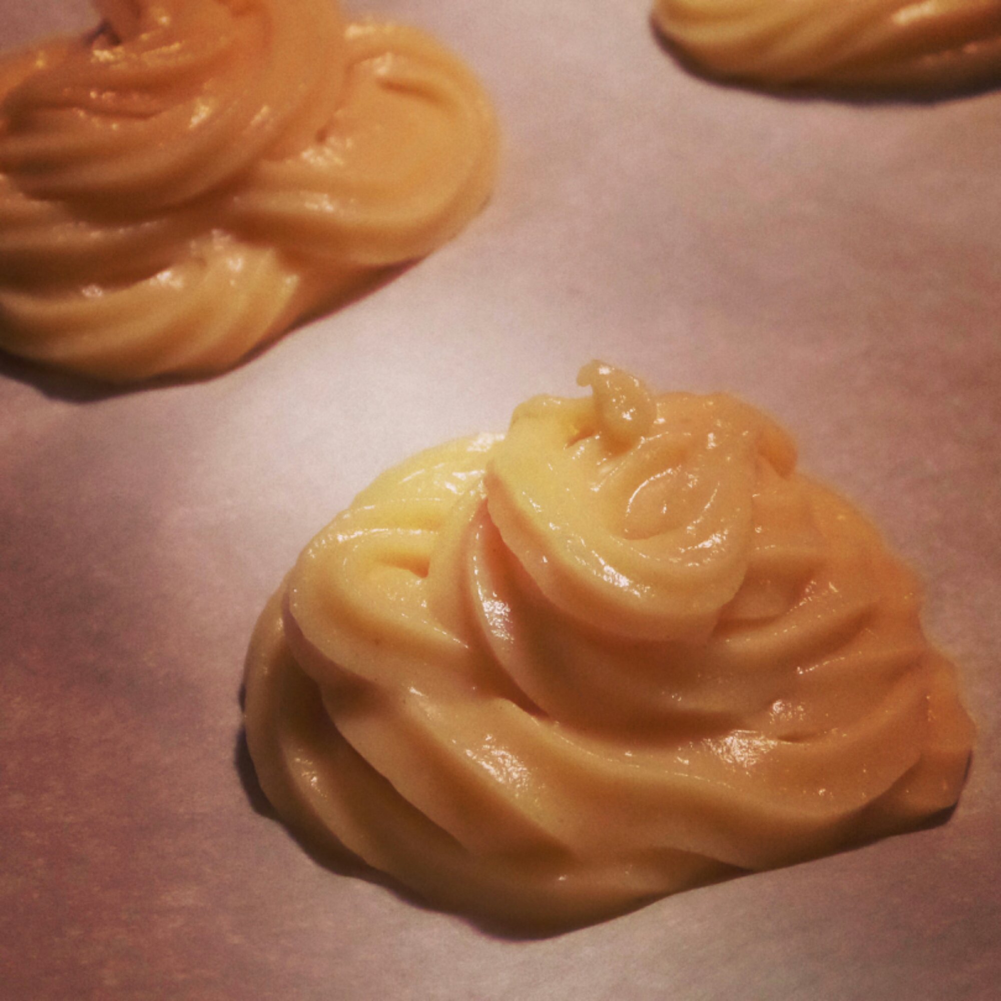 Now this might seem odd but you throw the warm dough into a processor and add the room temp eggs…. I thought I’d end up with a scrambled mess but that wasn’t the case! The eggs have to be room temp.