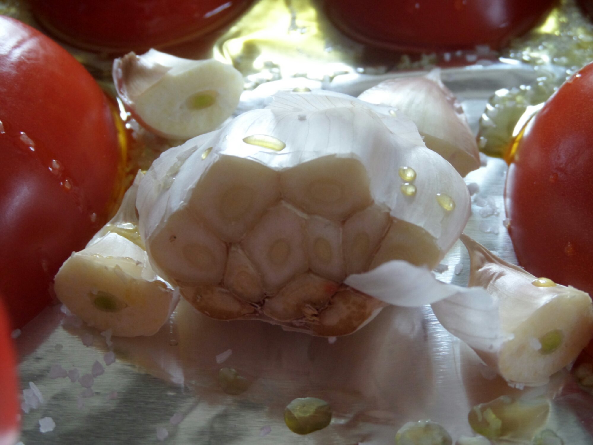Roast the veggies with the garlic, some olive oil and kosher salt.