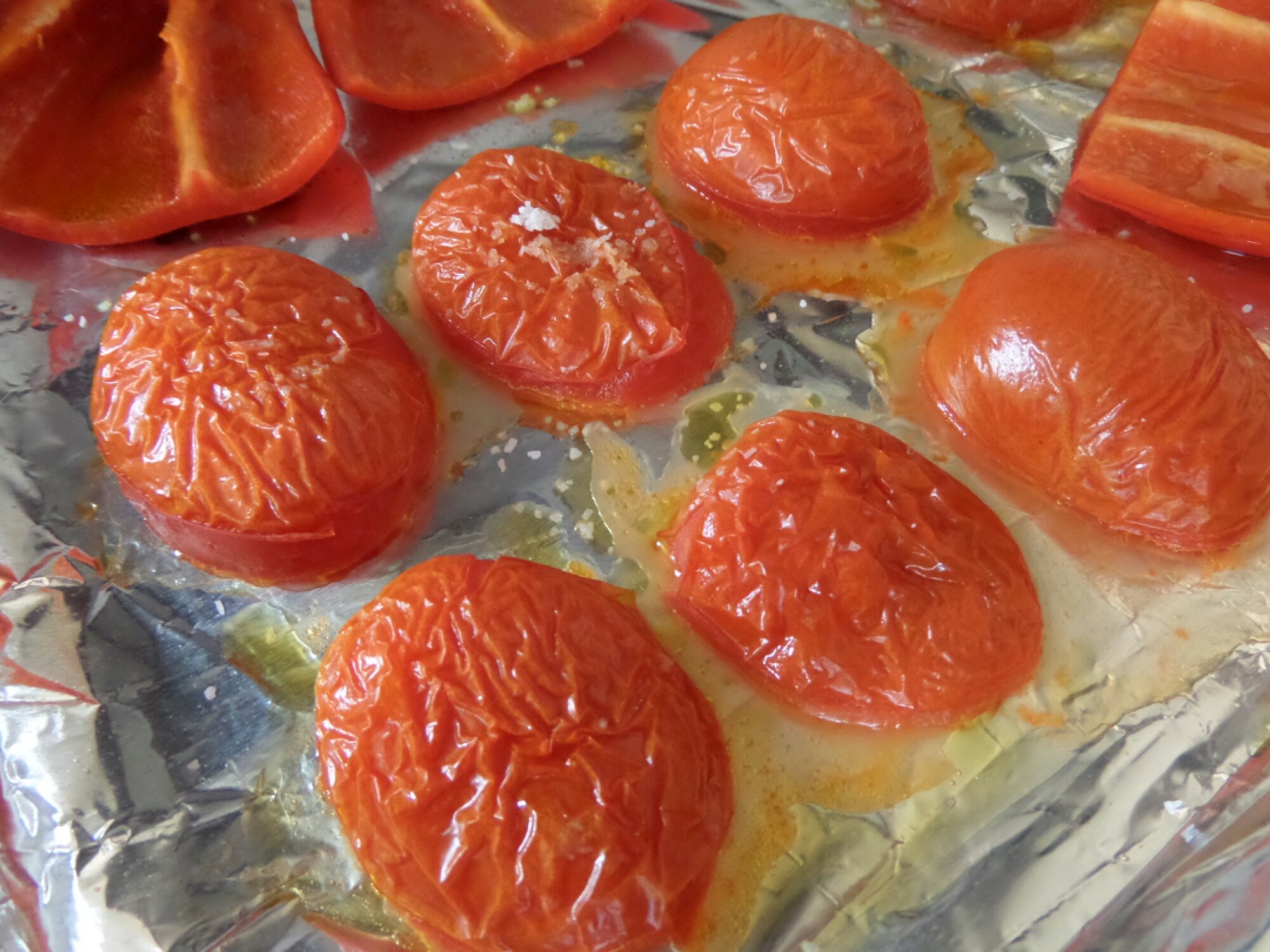 6 tomatoes and two red bell peppers was the perfect combination for a little over 2 cups of sauce.