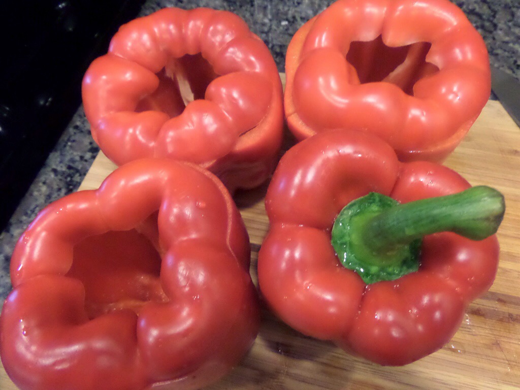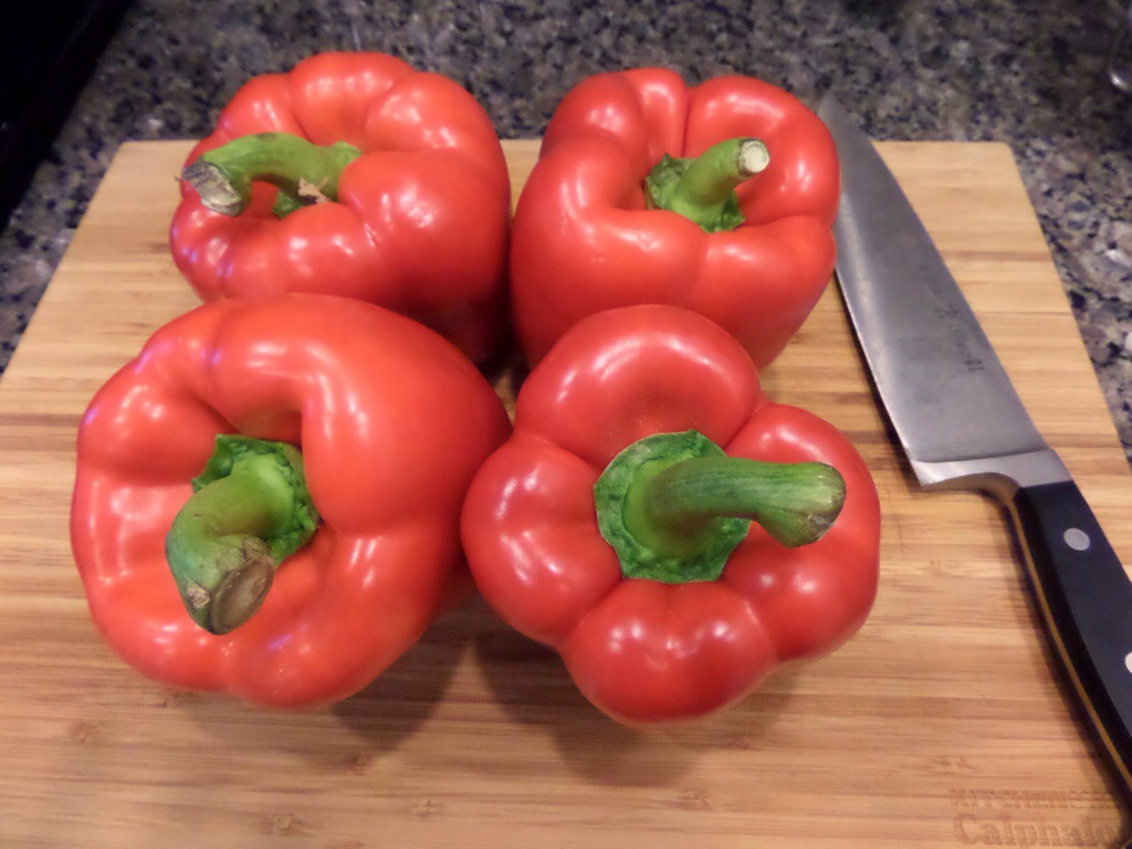 It’s the ultimate summer appetizer but there’s no frying involved and the ‘breading’ is in the form of croutons. It also requires some beautiful red bell peppers.
