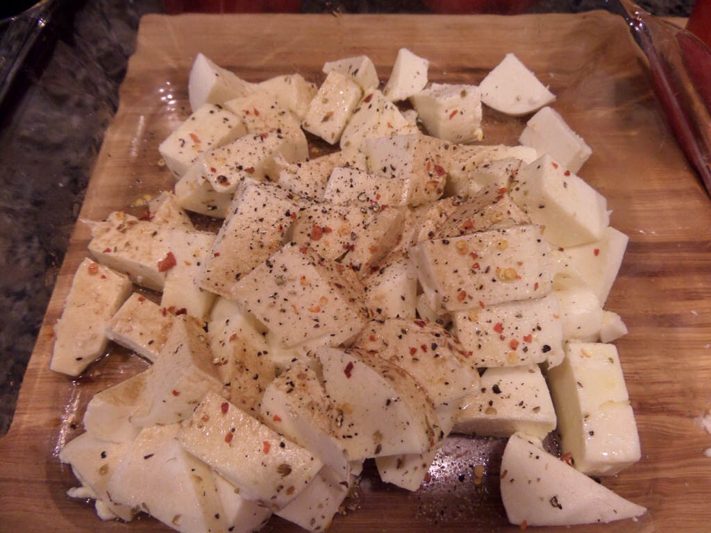 I seasoned it with some dried basil, salt, pepper, red pepper flakes and a bit of dried thyme…fresh basil, torn, would have been the best choice.