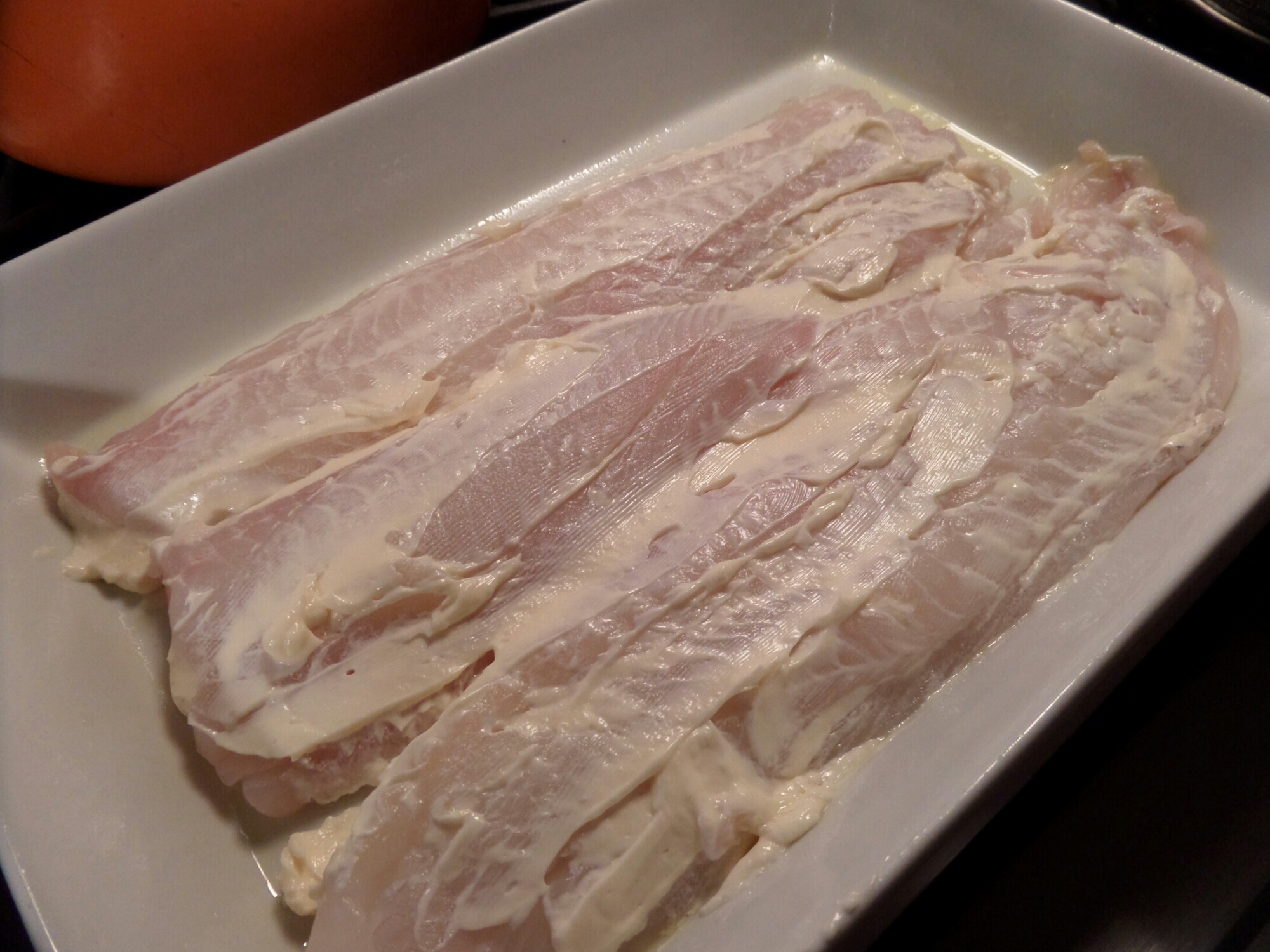 Have no fear, mayo is still necessary. I covered the fish in a thin layer of the good stuff, as it really helps to keep the fish moist.