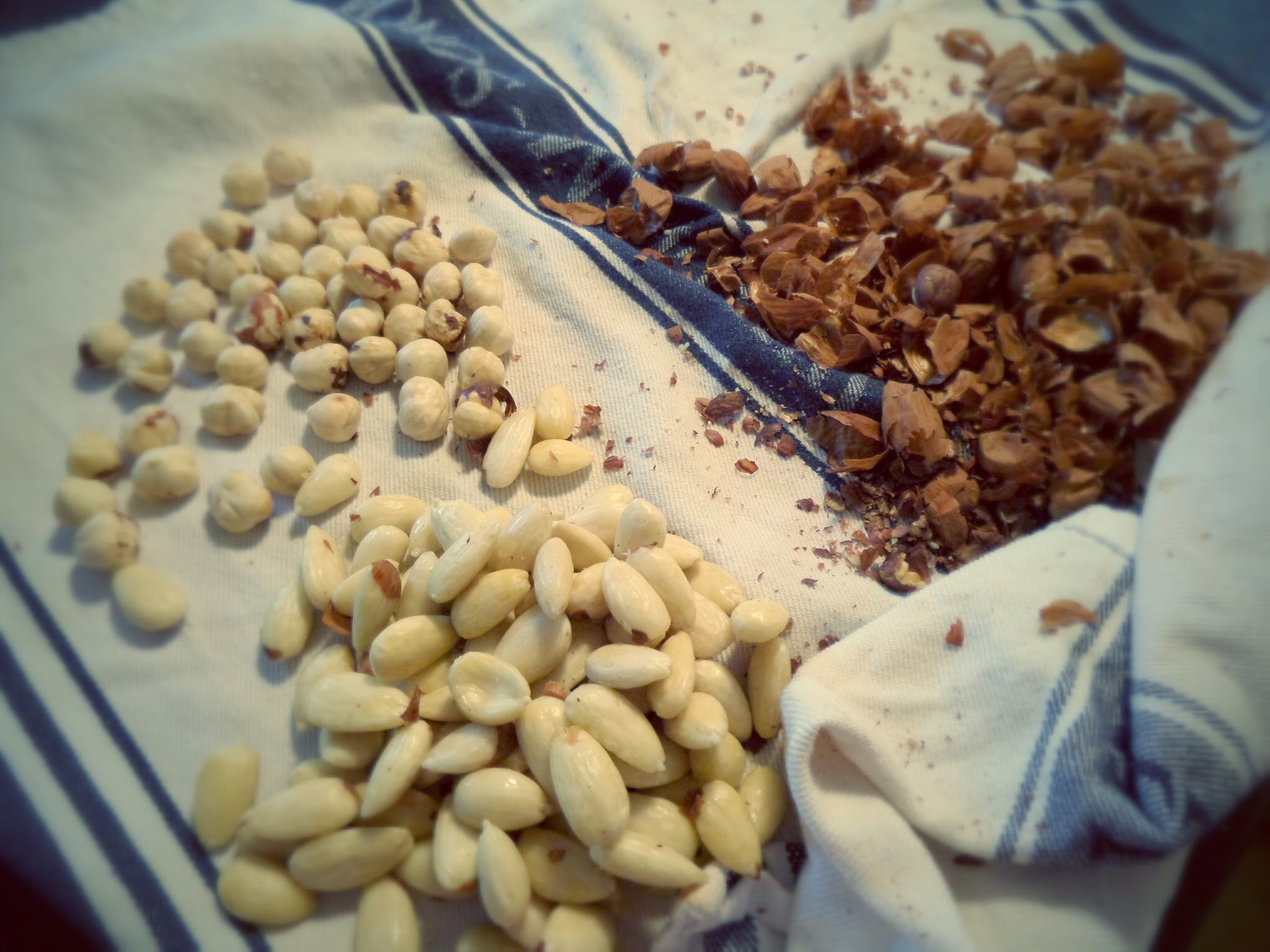 So speaking of nuts, here’s a few tricks to blanch/toast/peel the almonds and hazelnuts.