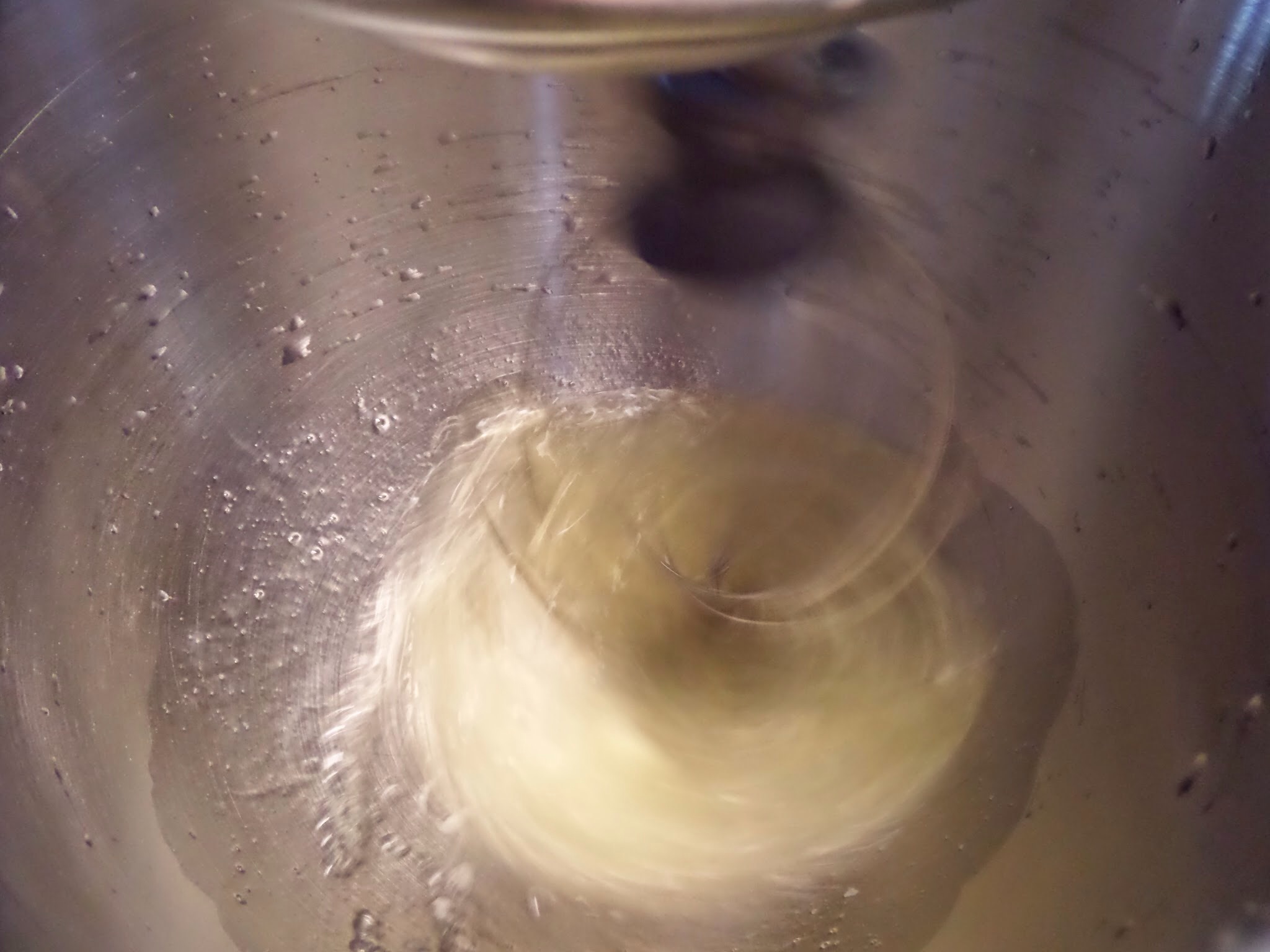 Next up? Whipping the egg white. Don’t forget to save the yolks….you’ll need them later, to finish the buttercream.