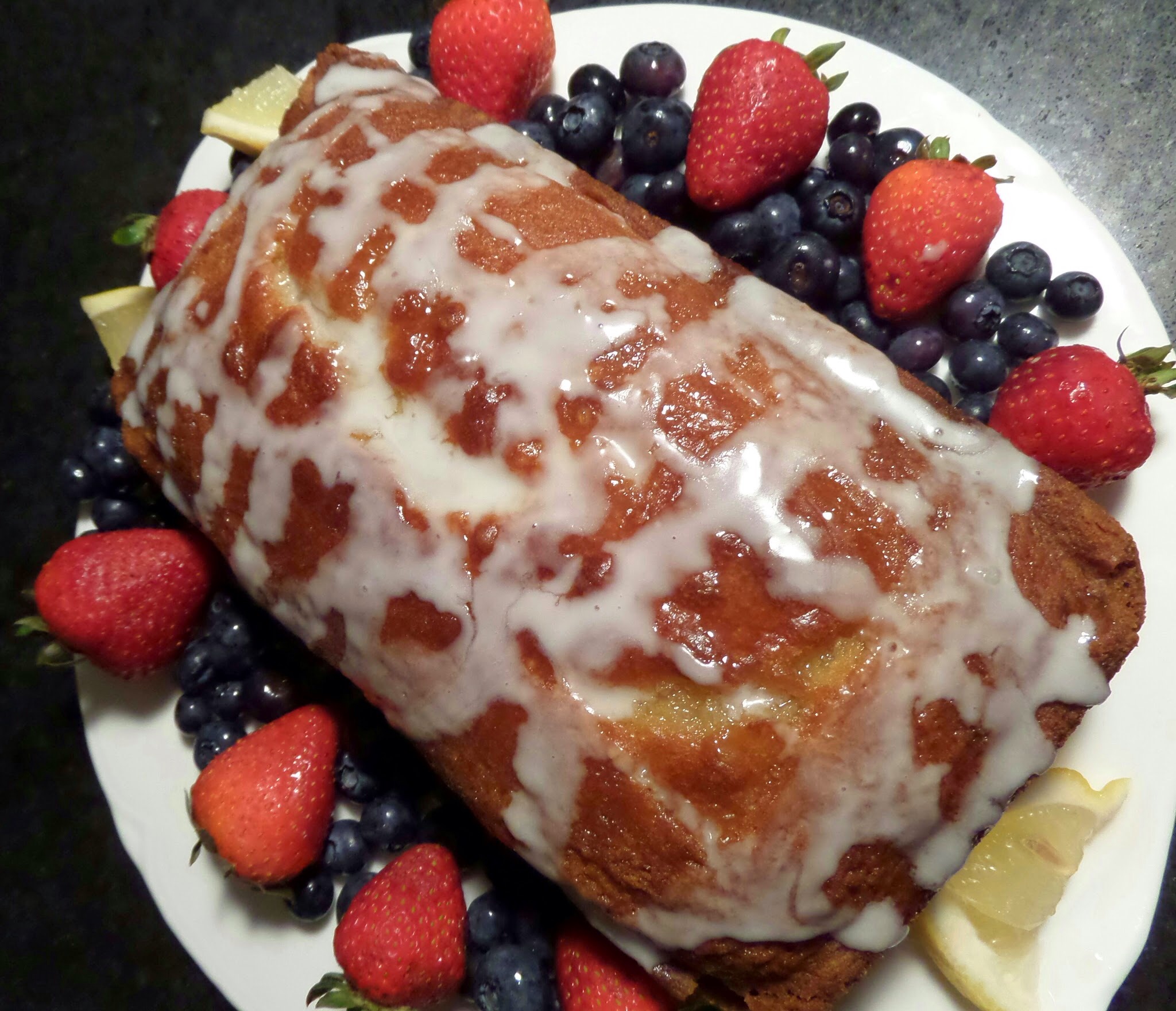 This recipe is very straightforward and yields a dense lemony pound cake that’s delicious with fresh fruit.