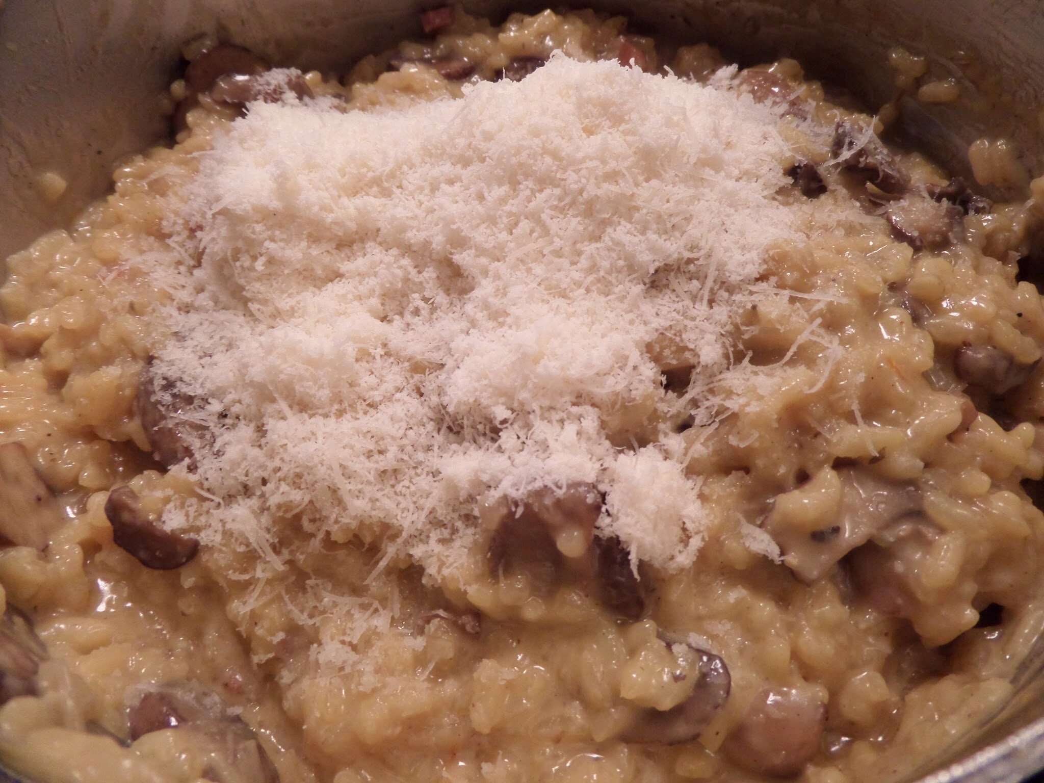 So let’s start with the mushroom risotto. Ina Gartin provides a very good recipe that’s cheesy and full of flavor.