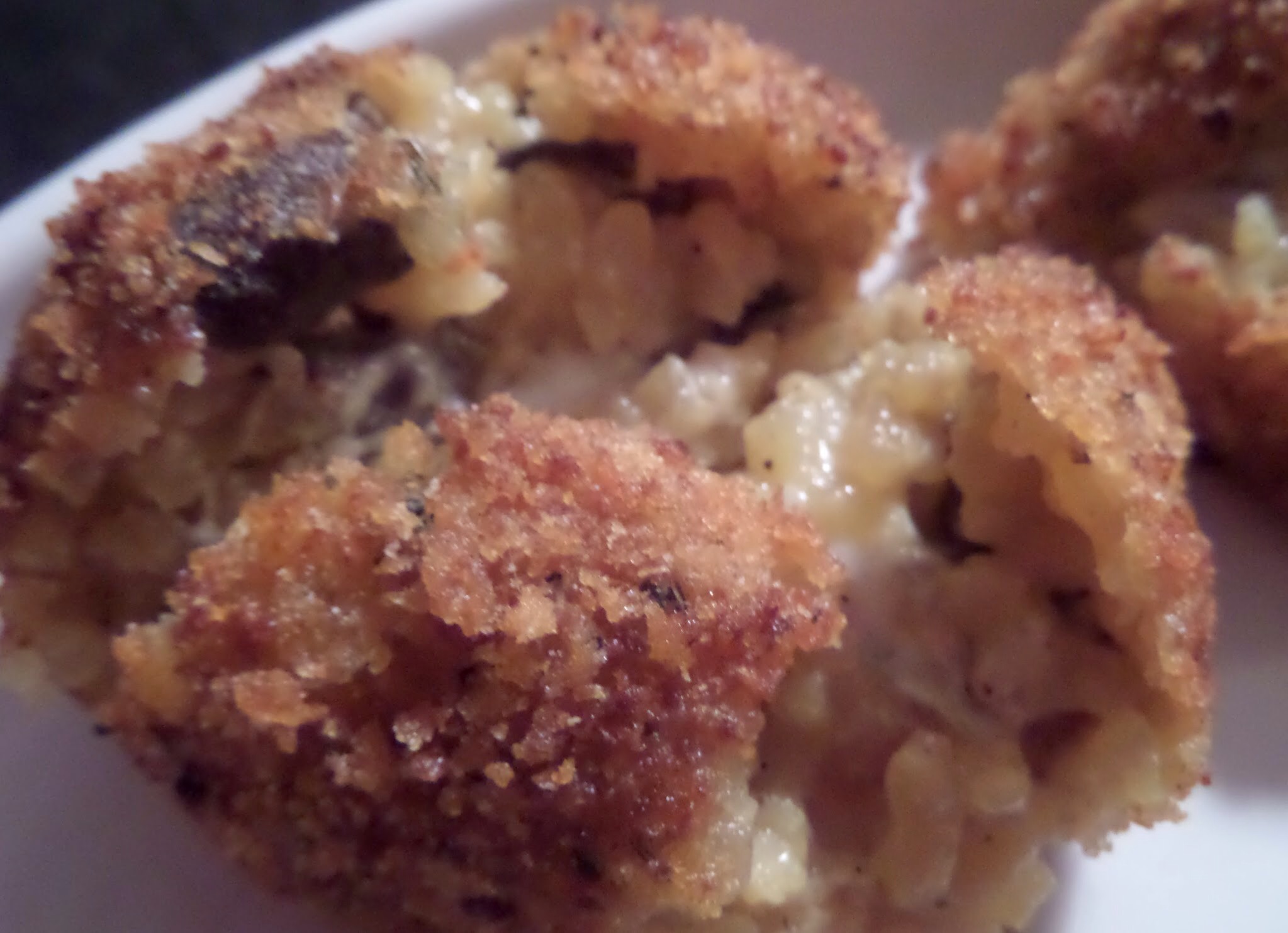 Who doesn’t adore wild mushroom risotto?? If you’ve been scared by risotto in the past, it really isn’t that difficult. Yes, it does require constant attention for 20 minutes or so, but it’s kind of hard to screw up if you’re on top of it. The best thing about risotto? The leftovers!! The options are endless. I chose to go with arincini.