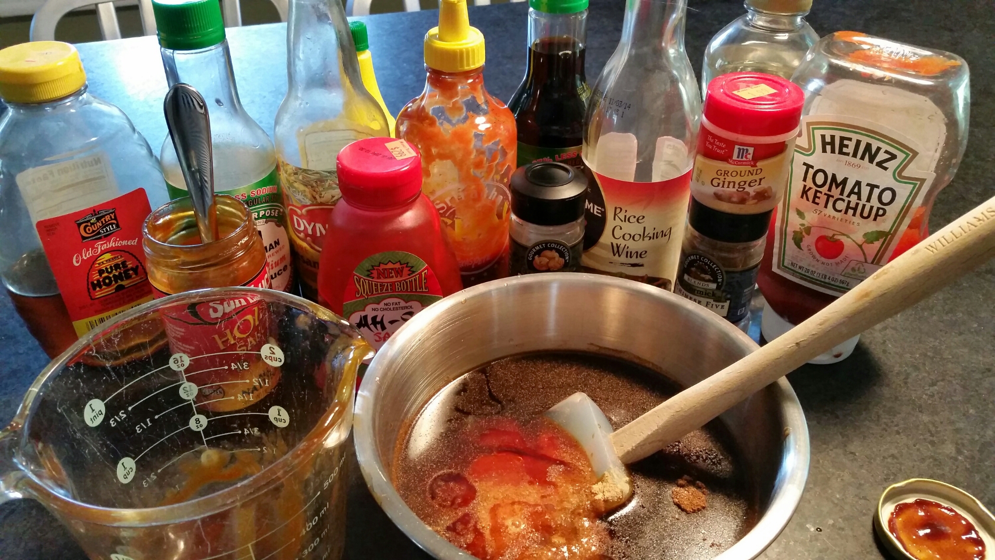 It’s a ‘clean your pantry’ kind of adventure, as you can see. The end result? A sweet, spicy, salty concoction that makes pork shine… Literally.