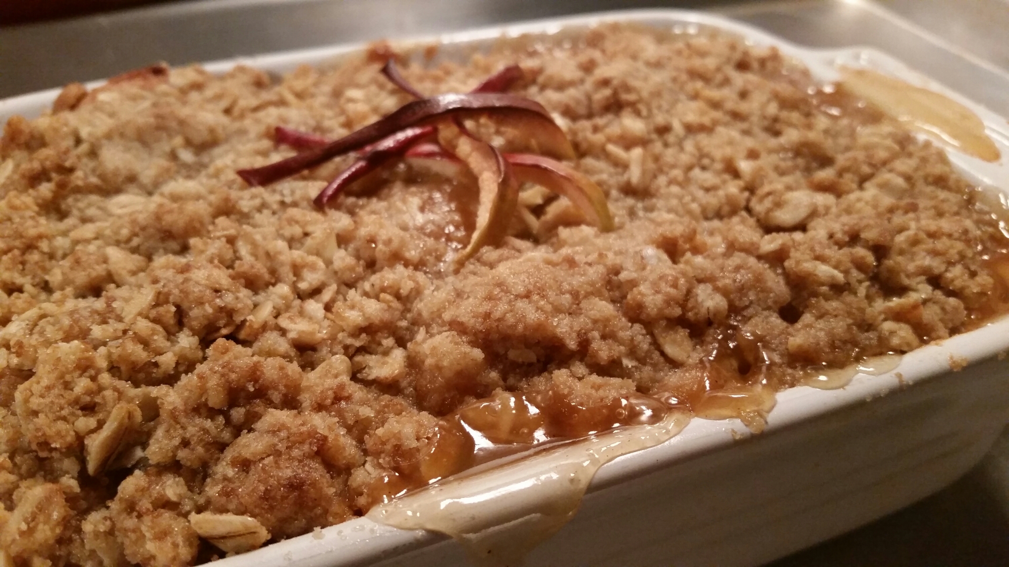 Place the crisp on a sheet pan and bake for 1 hour until the top is brown and the apples are bubbly. Serve warm.