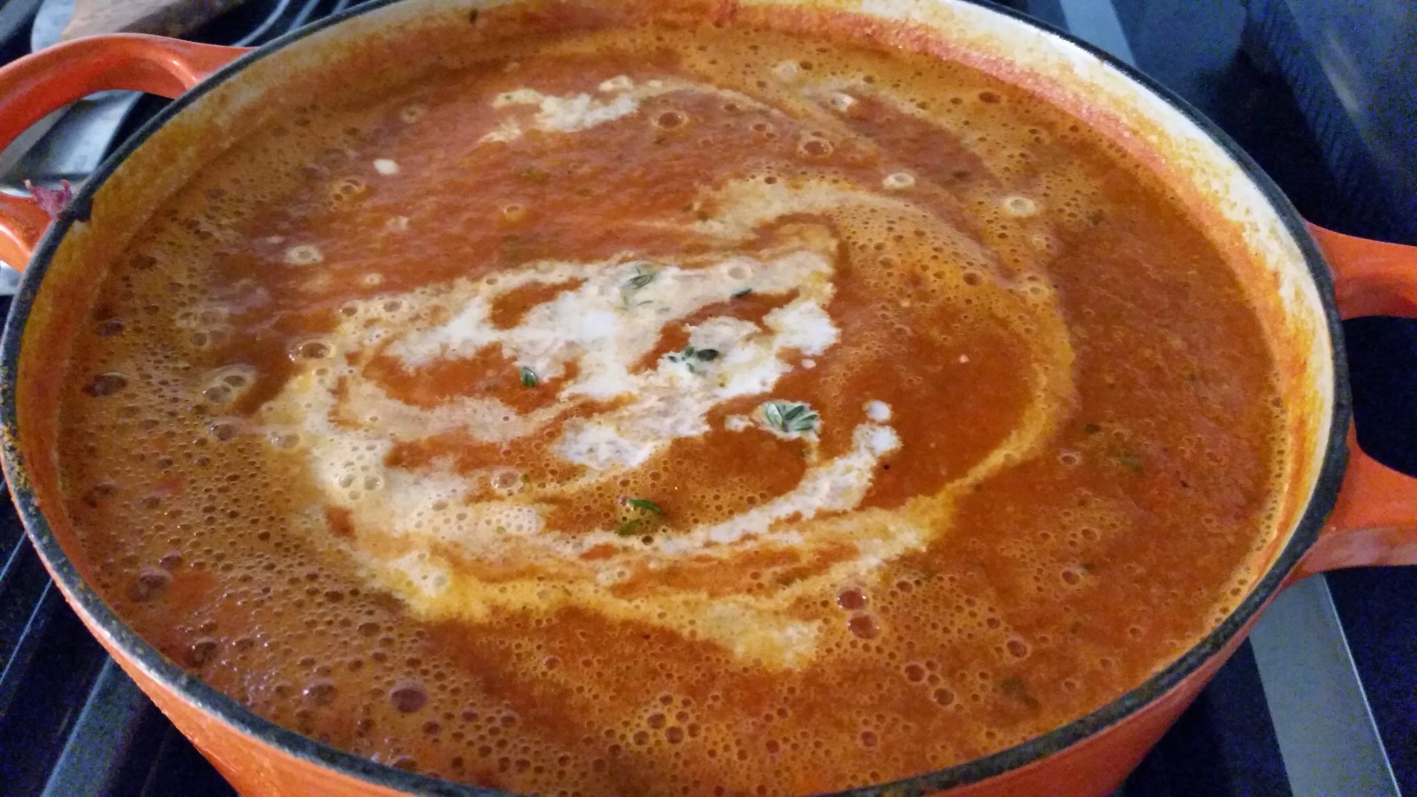 At this point, you could run the soup through a food mill or strainer. I kind of liked the chunky factor so I opted to skip this step.