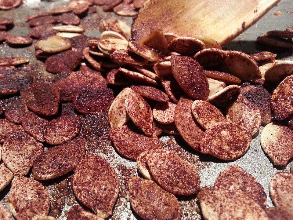 No pun intended… These are really Autumn’s pumpkin seeds. She’s our guest this week and these looked too amazing not to post! Autumn and her mum, Jennifer, used this recipe to roast the seeds: