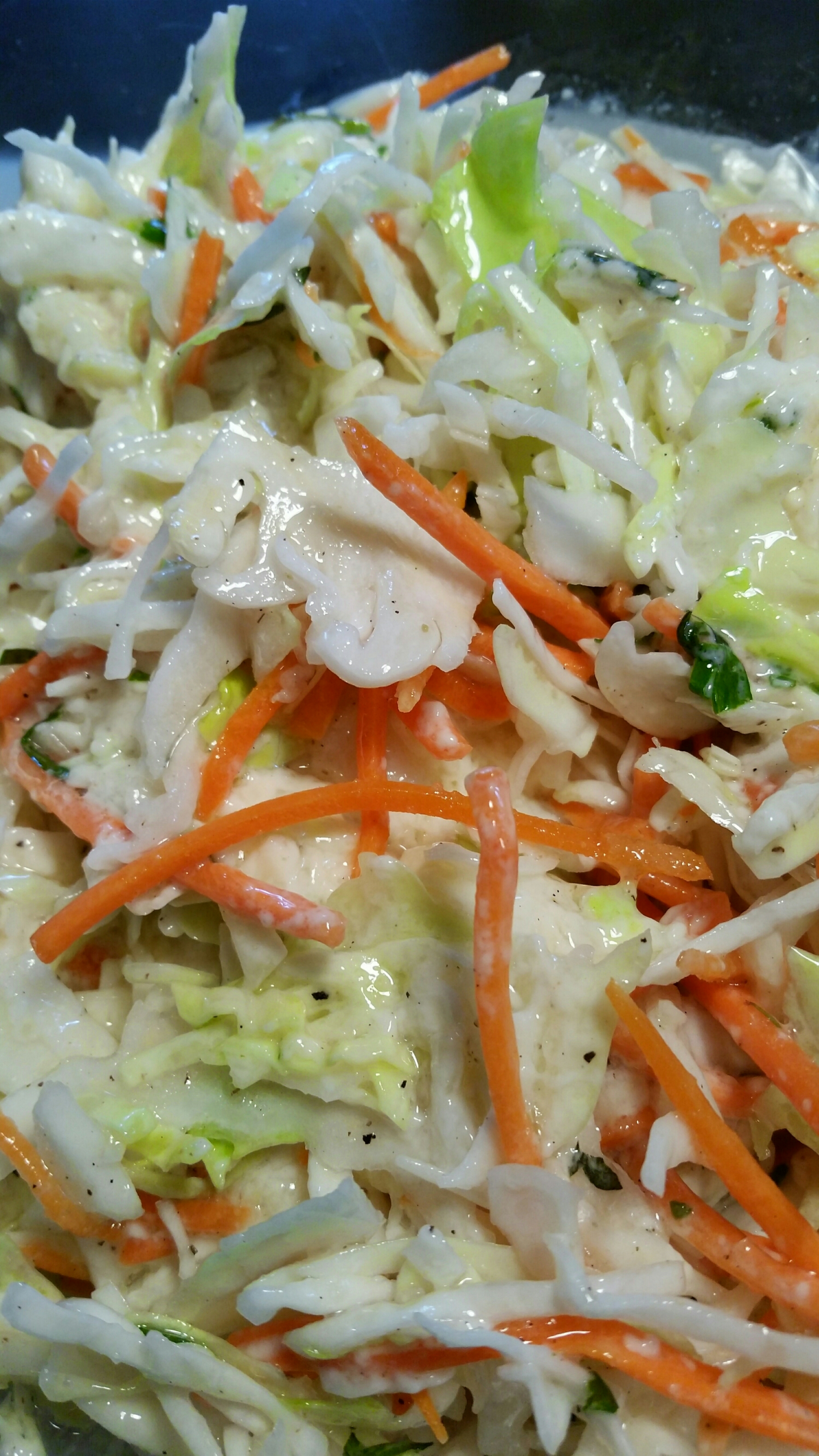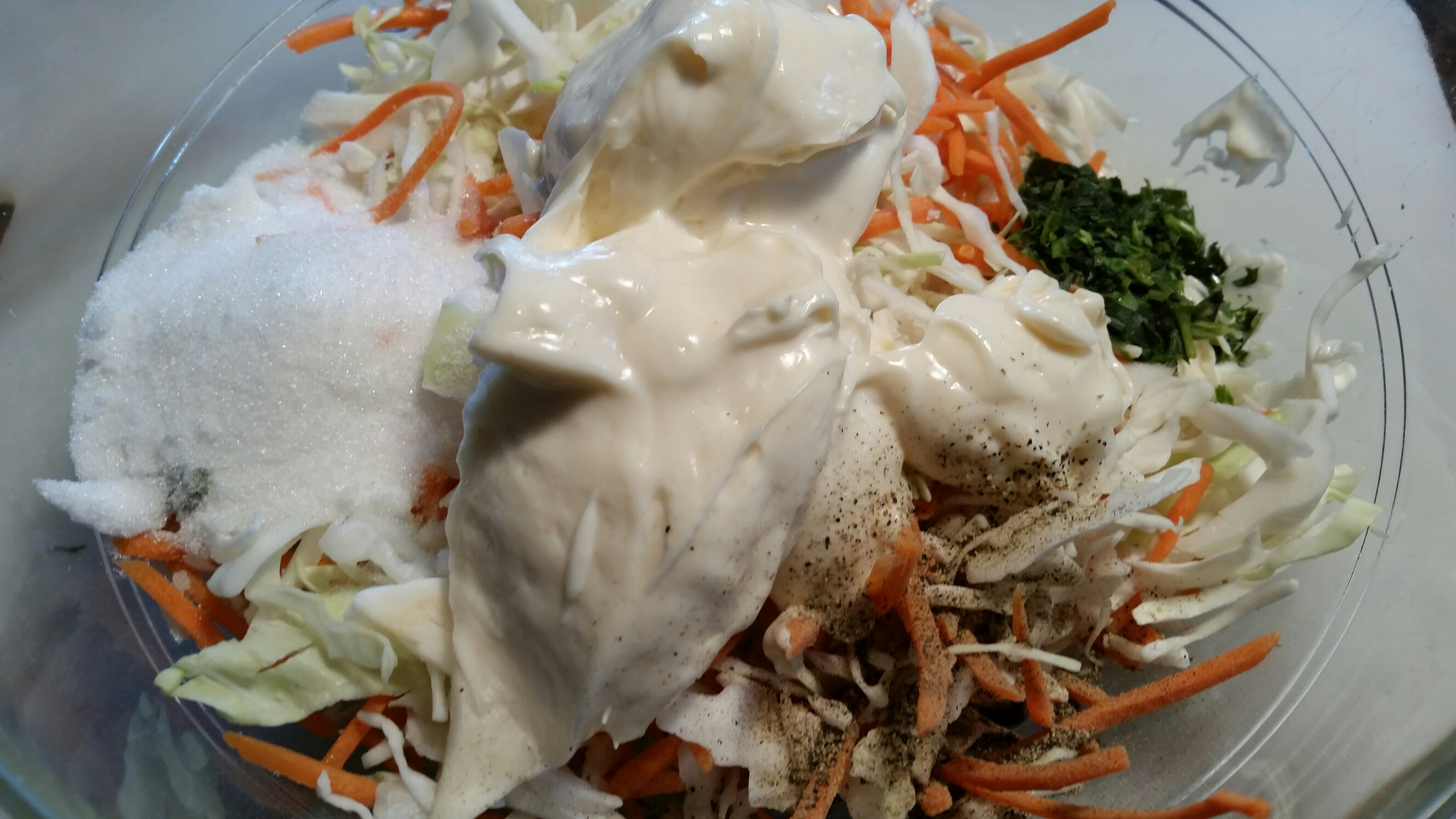 There are plenty of copycat recipes online but the real truth is in the comments of said recipes. This is where former employees tell the author they’re doing it all wrong. Don’t use regular mayo, use tarragon infused vinegar, etc. Now I highly doubt KFC is using something as uncommon as tarragon vinegar but since I had some tarragon and vinegar, I figured what the hell. I diced the tarragon and let it hang in the vinegar for a few minutes. I anticipated throwing the tarragon in the slaw so I didn’t let it soak all that long.