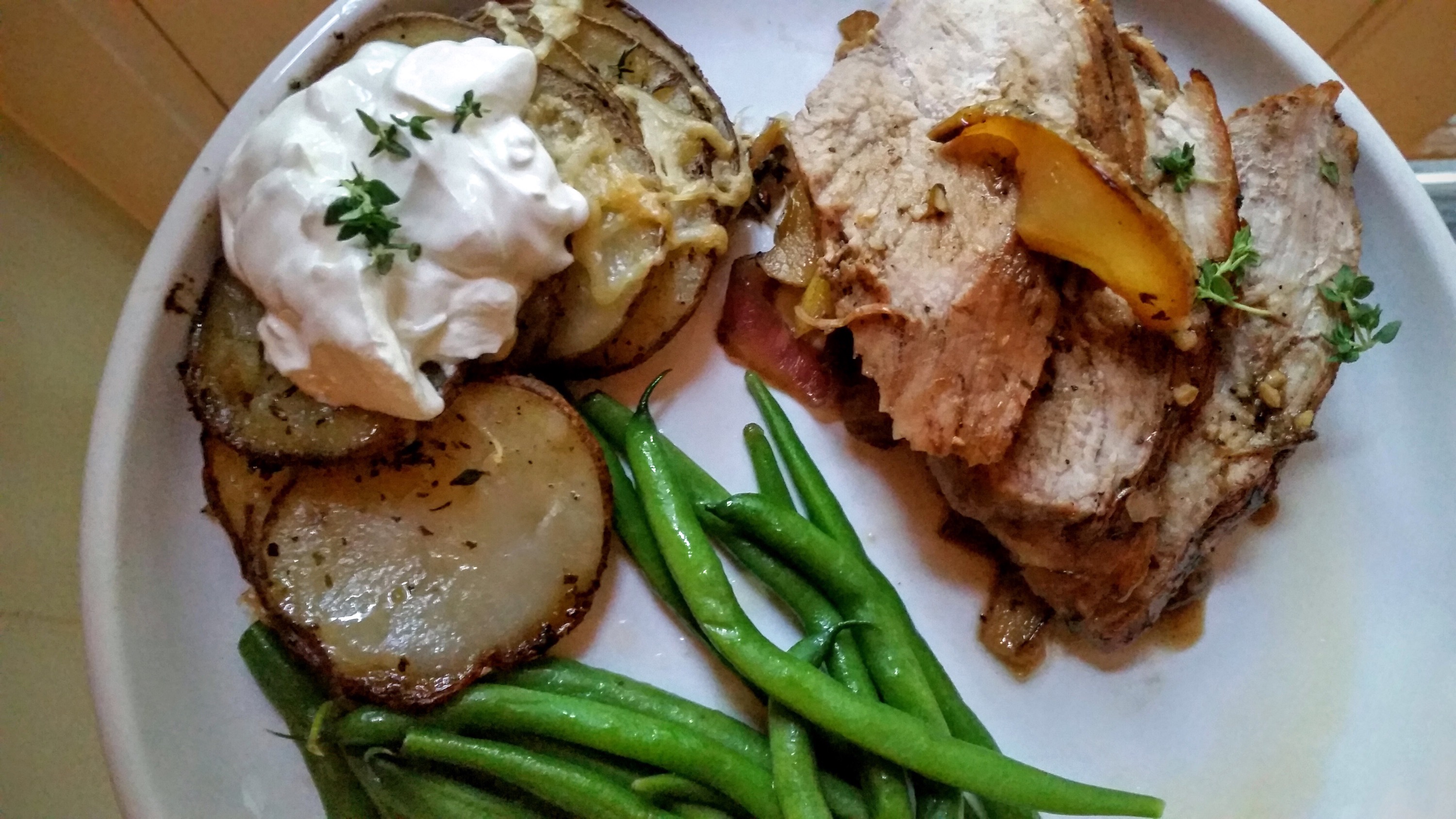 So you may remember my post for Tarragon Chicken, that I found in a Williams Sonoma catalogue, years ago. Sometimes, they have some killer recipes and this glazed pork with pears and thyme is no exception. It needed a tiny bit of tweaking but Stevo declared it the best pork to ever come outof this kitchen…..correction, his grill.
