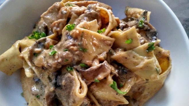 Now here is where you need to make a decision. Pasta or mashed potatoes?!! I’ve served this with both and I am partial to serving it over some yummy pappardelle.