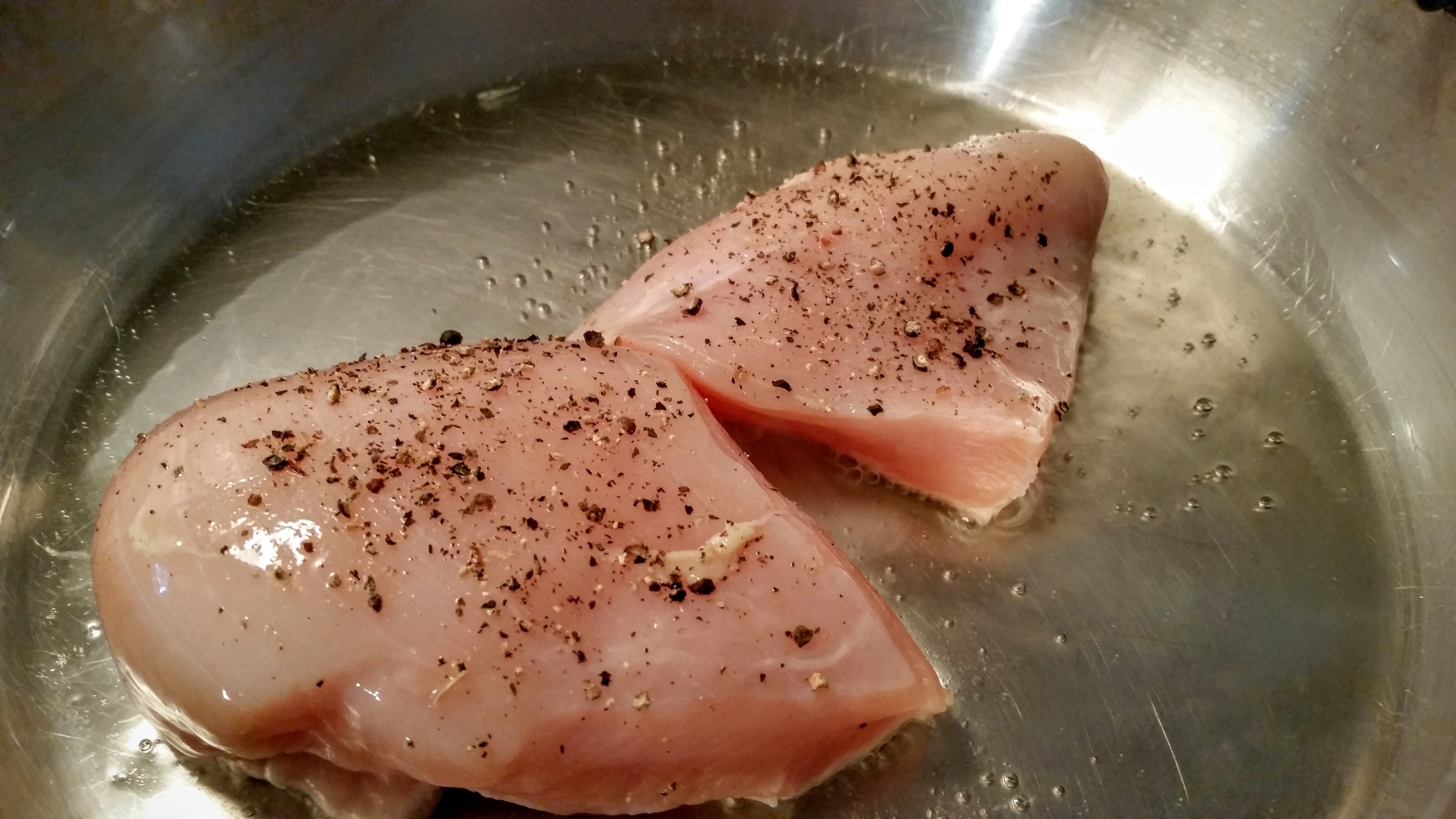 1 1/2 pounds boneless skinless chicken breasts, each breast cut crosswise into 3 pieces