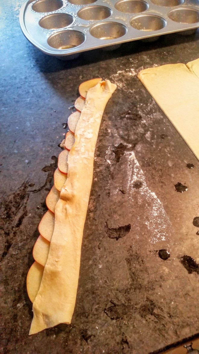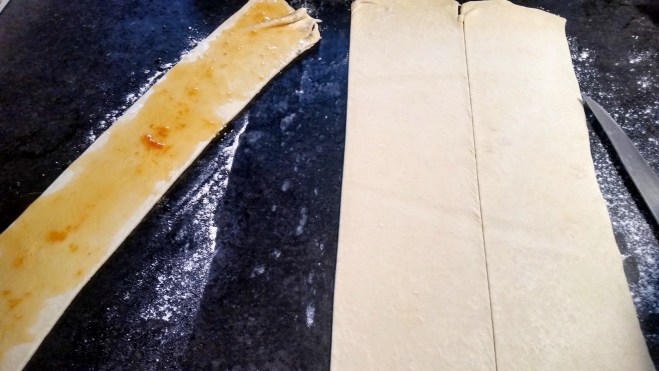 Rolling out the puff pastry and cutting it into strips was very straight forward.