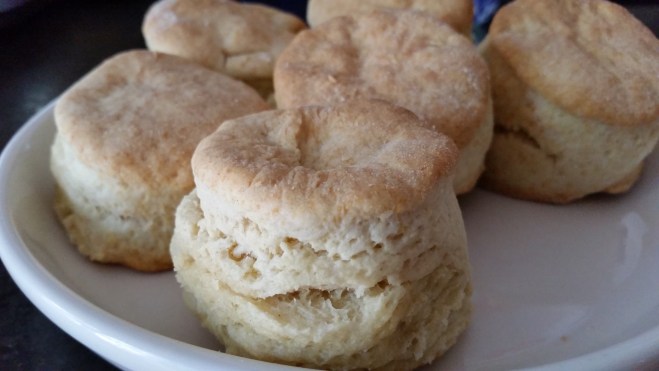 The following biscuit recipe, courtesy of Food.com, makes 6 small biscuits. Next time, I think I’ll double the dough as I prefer larger biscuits.