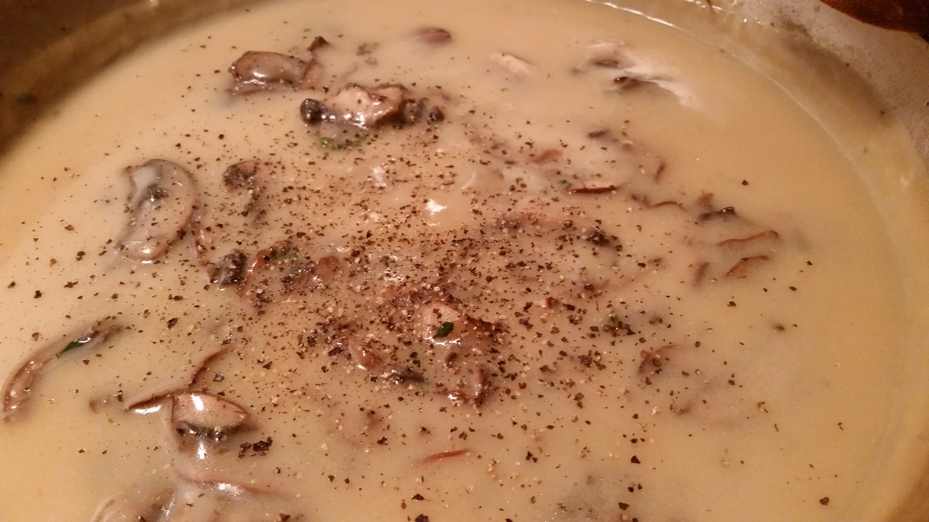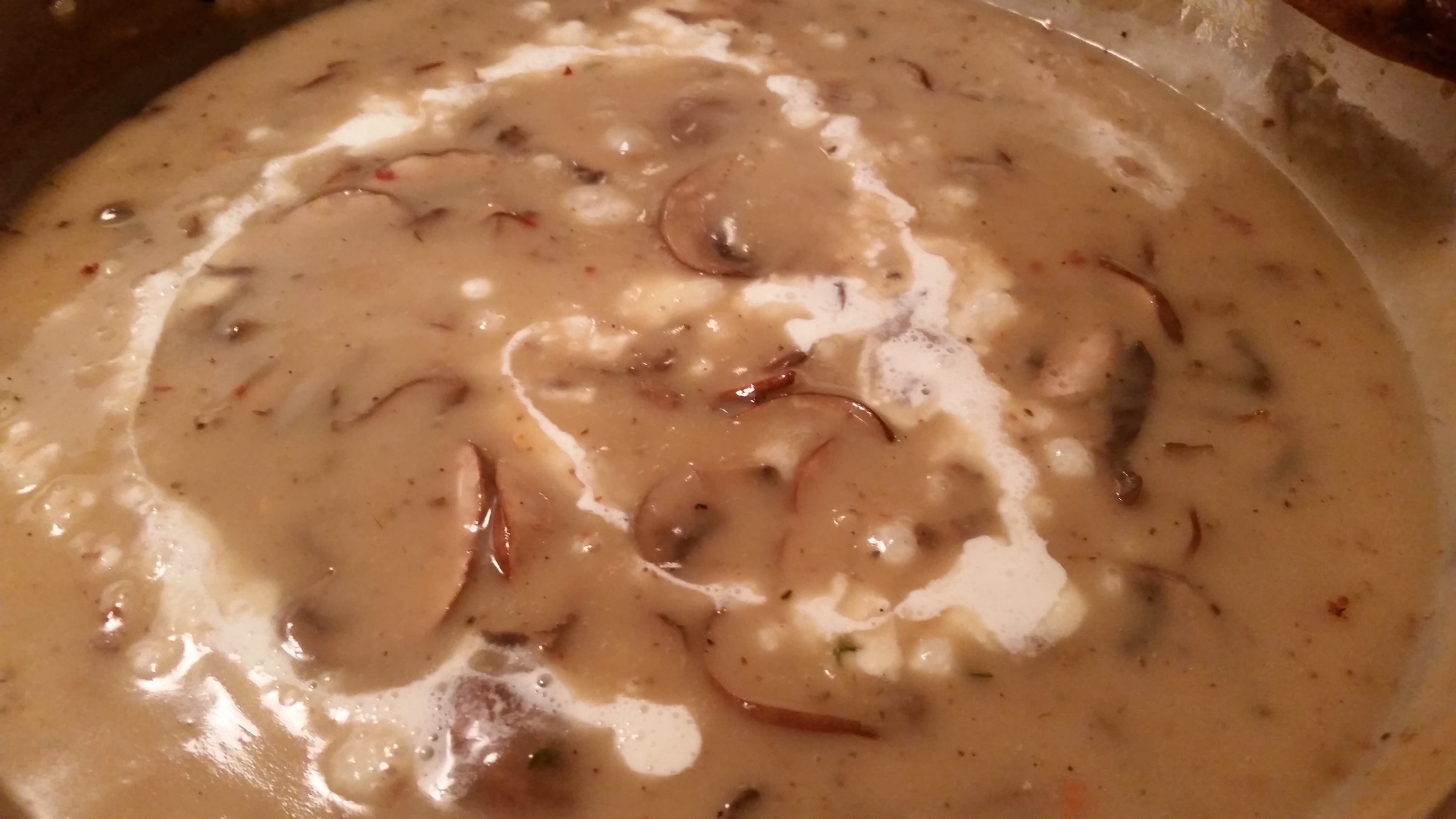 The sherry (very important) and chicken broth get added and the sauce is simmered for 25-30 minutes. Be sure to stir every few minutes!