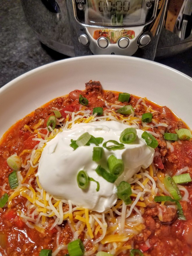 You’ve gotta love a man that buys himself a 4 quart slow cooker as a birthday treat! He was in the mood for chili but didn’t want to use the 8 quart bad boy because we’d have to make enough for a small army. So once the new addition was purchased, unpackaged and washed, it was time to seek out the perfect recipe.